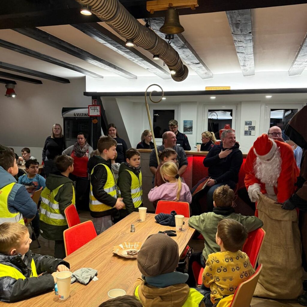 Zwischen Kinderpunsch, Plätzchen und einem neugierigen Blick in die Feuerwehrfahrzeuge blieb genug Zeit für Fragen an den Nikolaus – etwa, ob es am Nordpol auch eine Feuerwehr gibt und ob seine Rentiere die „112“ kennen.