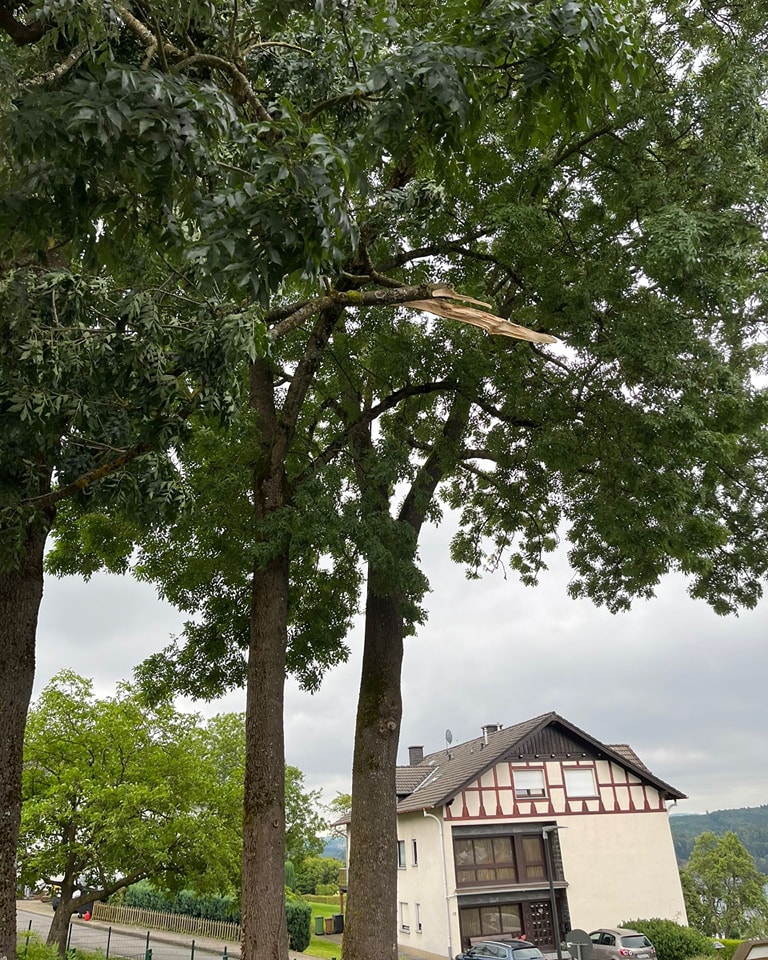 Im Bereich des Kindergartens drohte ein größere Ast auf die Straße und den Gehweg zu stürzen.