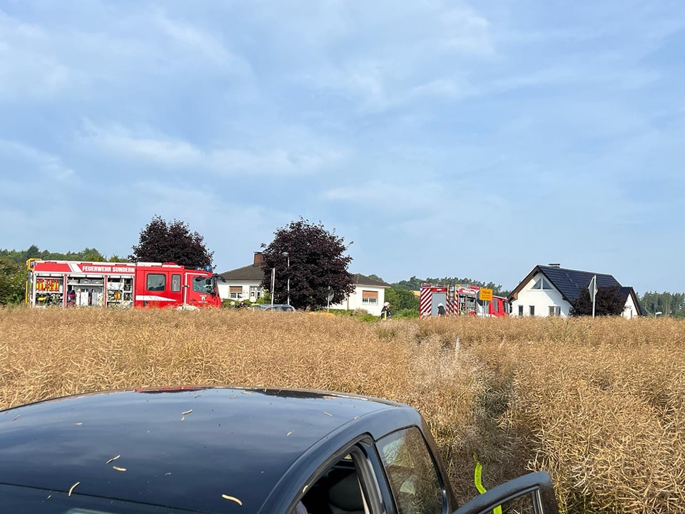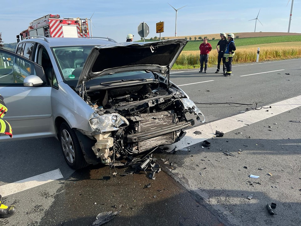 Dabei war die Aufprallintensität derart hoch, dass ein beteiligtes Fahrzeug erst in einem angrenzenden Rapsfeld weitab der Fahrbahn zum Stehen kam.