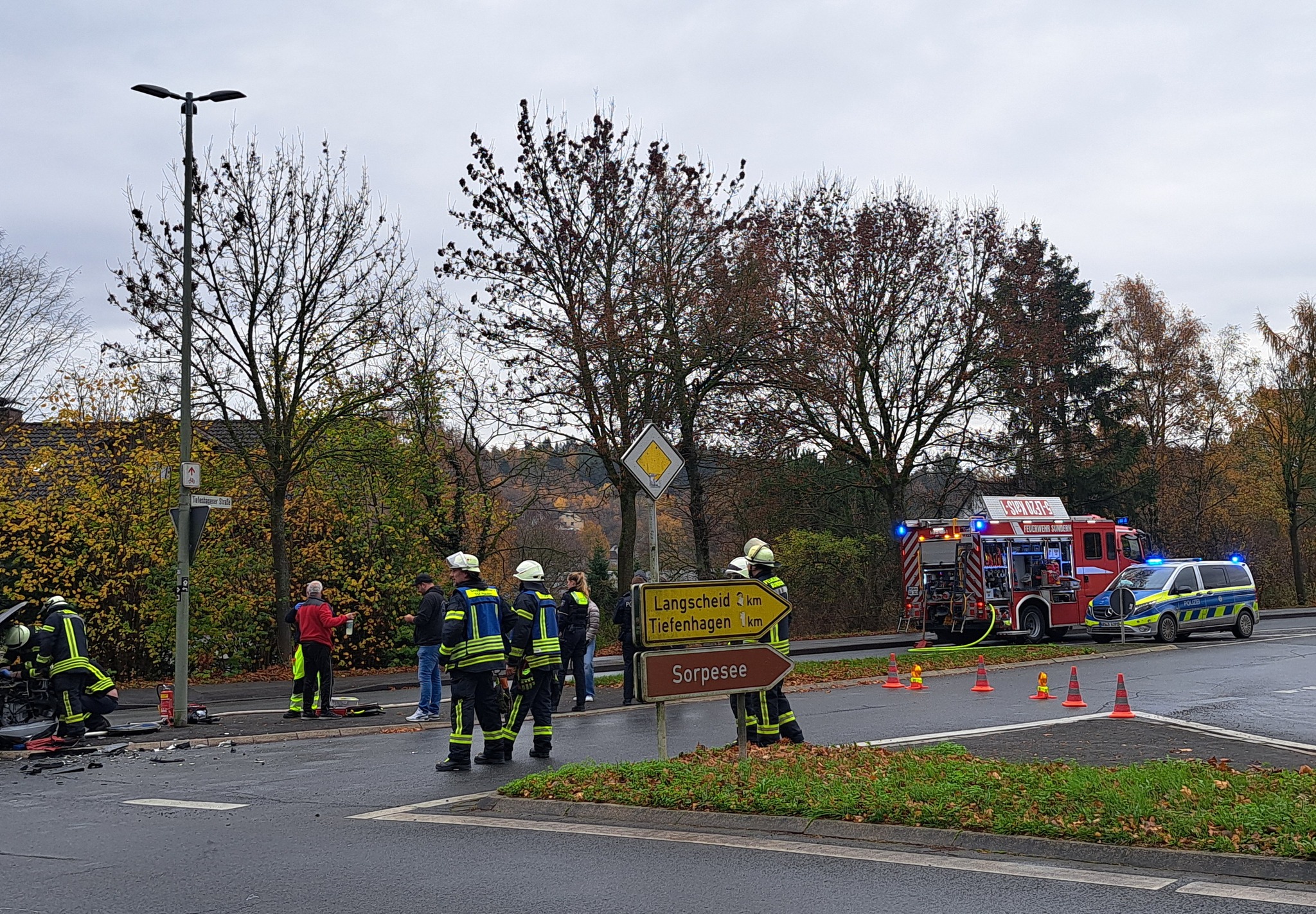 Die Einsatzkräfte der Einheit Hachen stellten den Brandschutz sicher, nahmen die Fahrzeugbatterien außer Betrieb und unterstützten bei der Absicherung der Unfallstelle sowie bei der anschließenden Fahrzeugbergung und Fahrbahnreinigung.