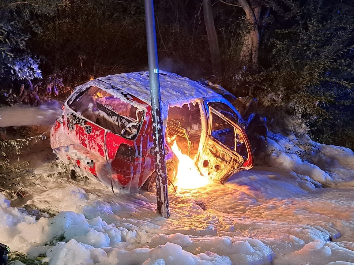 Denn bei Eintreffen der ersten Einsatzkräfte der Feuerwehr stand der Pkw bereits in Vollbrand.
