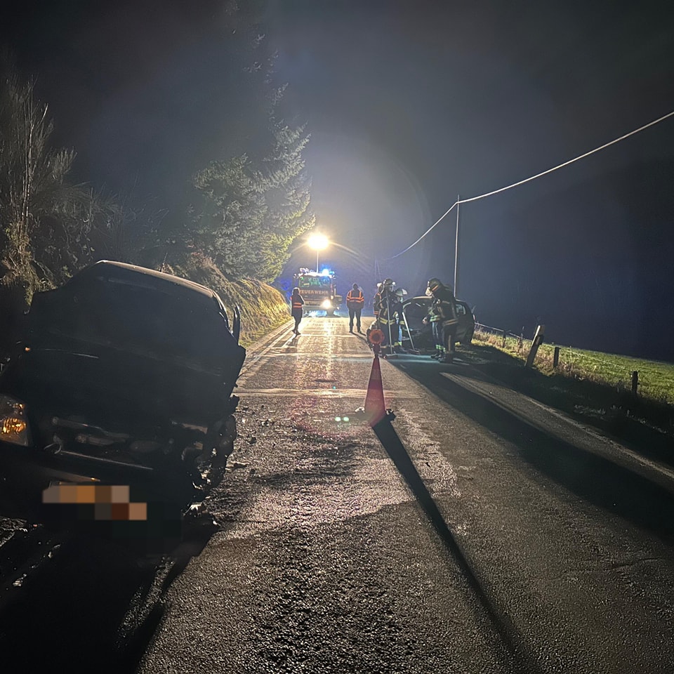 Zwei Fahrzeuge waren kollidiert und die Insassen verletzt. Glücklicherweise konnten die beteiligten Personen ihre Fahrzeuge selbstständig verlassen und wurden vom Rettungsdienst versorgt. Durch die Feuerwehr wurden die Batterien der Fahrzeuge abgeklemmt und auslaufende Betriebsmittel aufgenommen.