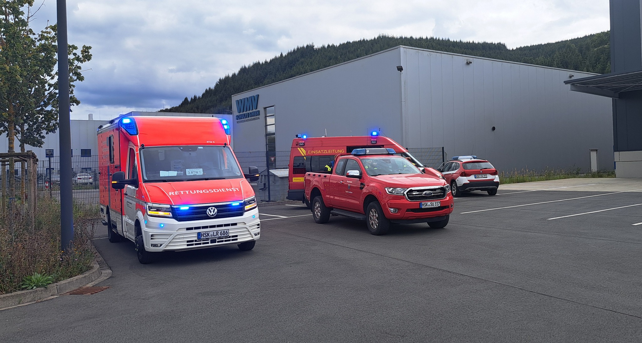 Mit diesem Einsatzstichwort wurden am heutigen Freitag um 17:23 Uhr die Einheiten Sundern und Stemel, die Drehleiter, der Rüstwagen, der Einsatzleitwagen (IuK-Einheit), der GW-Logistik sowie Rettungsdienst und Polizei zu einem Gewerbebetrieb „Im Dümpel“ alarmiert.