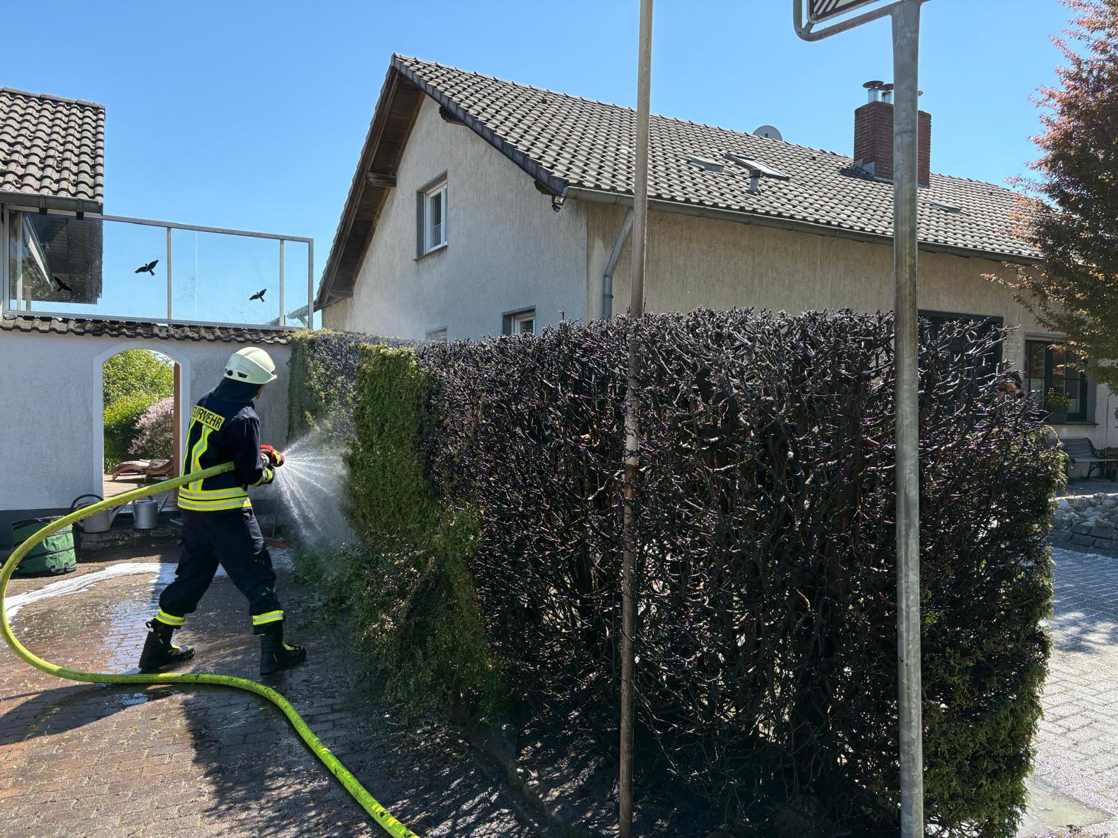 Am Dienstagmittag kam es in Langscheid zu einem Heckenbrand, bei dem die Feuerwehr dank ihres schnellen Eingreifens Schlimmeres verhindern konnte.