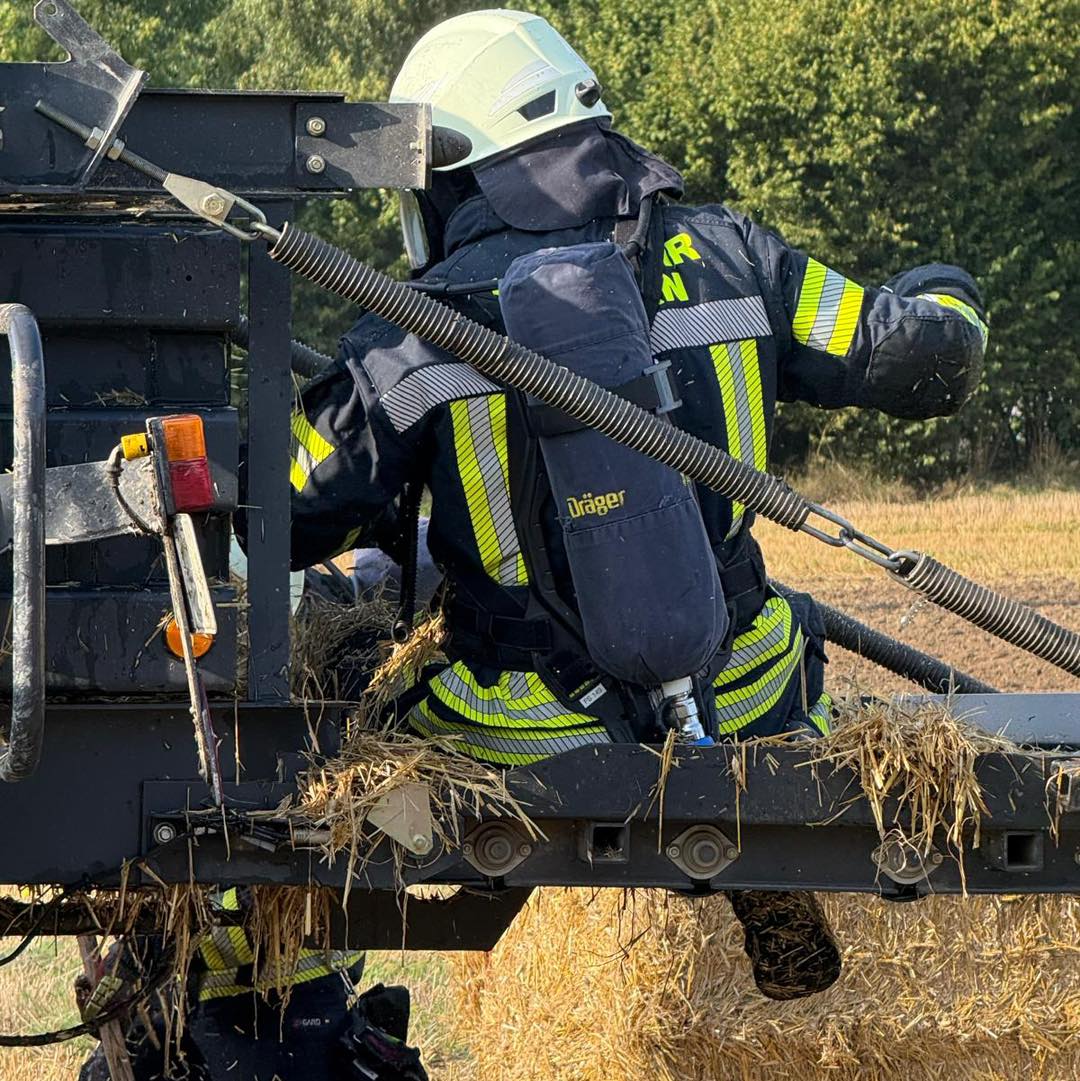 Beim Eintreffen des ersten Löschfahrzeugs konnte eine brennende Ballenpresse erkundet werden. Das Feuer hatte sich weiterhin auf das umliegende Stoppelfeld ausgebreitet. Durch einen direkt eingeleiteten und gezielten Löschangriff konnte eine weitere Ausbreitung des Feuers verhindert werden. Zeitgleich wurde die Ballenpresse abgelöscht.