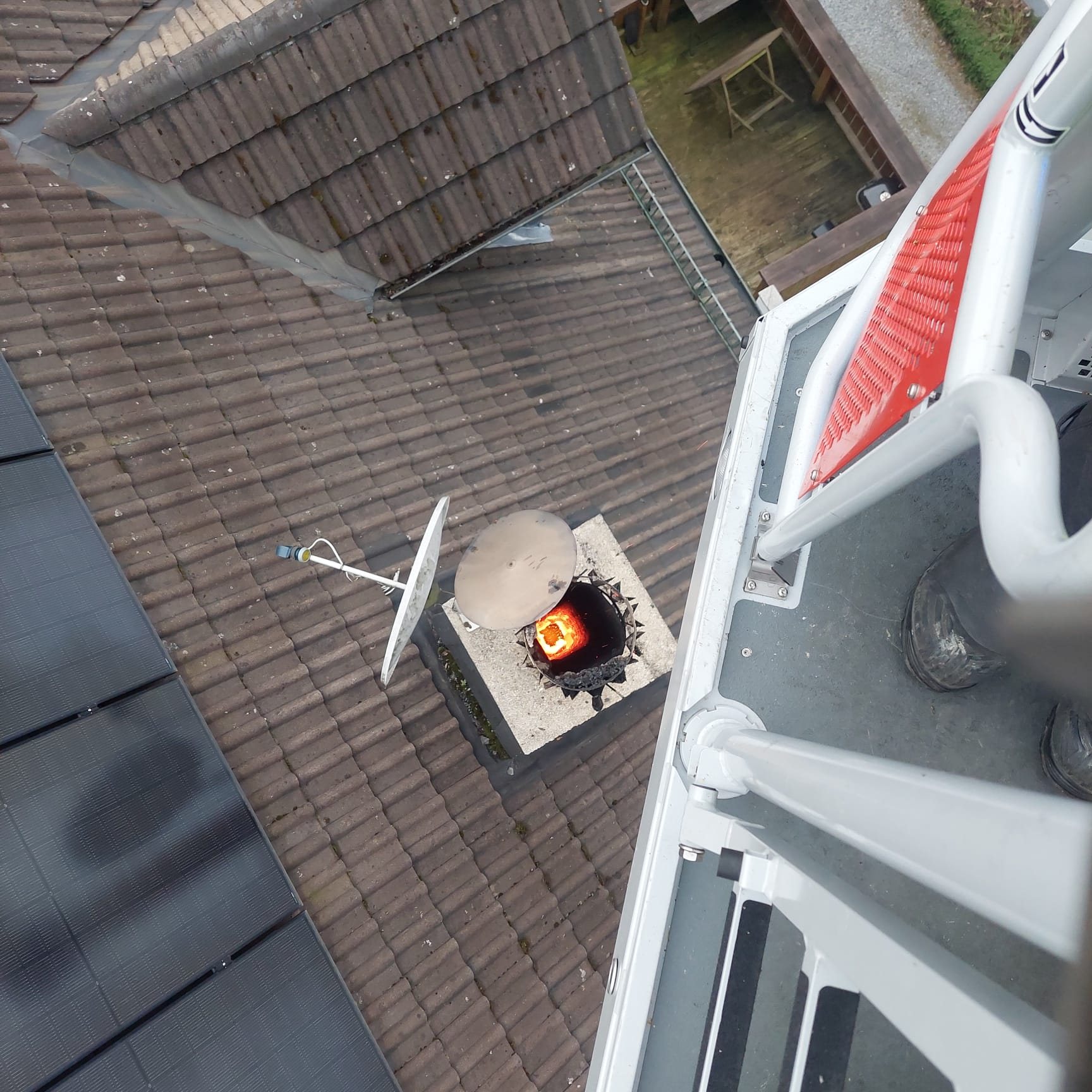 Der hingezogene Bezirksschornsteinfeger überprüfte im Anschluss den Kamin auf Schäden und weitere Gefahren.