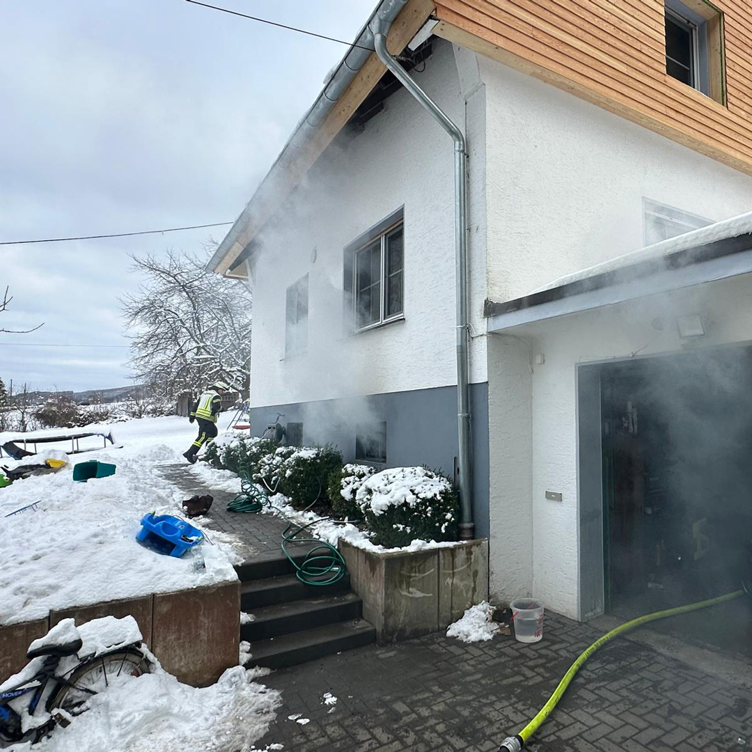 Ein Trupp unter Atemschutz drang in das Gebäude vor und konnte das Feuer schnell unter Kontrolle bringen und löschen.
