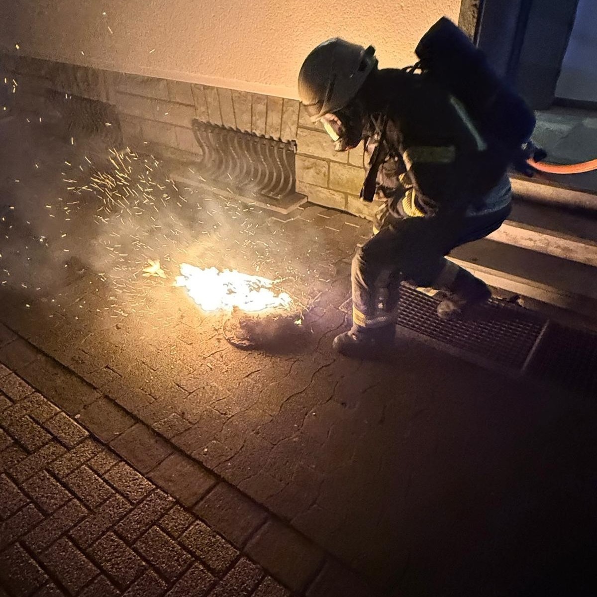 Ein Angriffstrupp ging unter schwerem Atemschutz in den betroffenen Bereich vor. Der brennende Adventskranz wurde aufgenommen, ins Freie gebracht und dort vollständig abgelöscht, um eine weitere Verrauchung der Räume zu vermeiden.