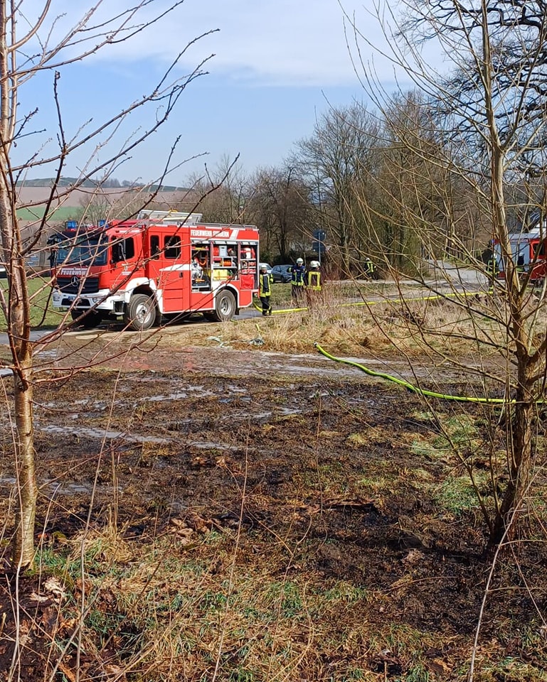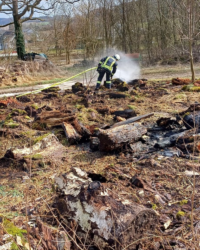 Durch eine unbeaufsichtigte Abraumverbrennung hatte sich im Umfeld trockenes Gras und Holz entzündet.