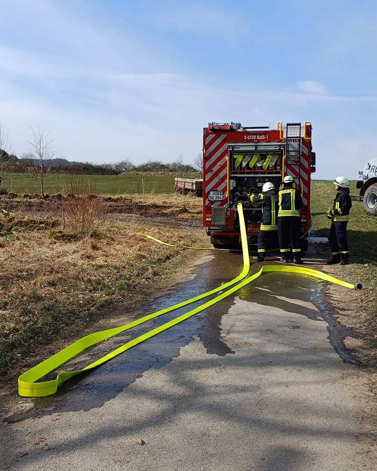 Mit Hilfe einer aufgebauten Wasserversorgung sowie ein mit Wasser gefülltes Güllefass, welches von einem ortsansässigen Landwirt der Einsatzstelle zugeführt wurde, konnte das Feuer sowie letzte Glutnester abgelöscht werden. Durch das schnelle Eingreifen der Einheit Altenhellefeld konnte das Feuer rasch bekämpft werden und weitere, auf der Anfahrt befindliche, Einheiten konnten die Einsatzfahrt abbrechen.