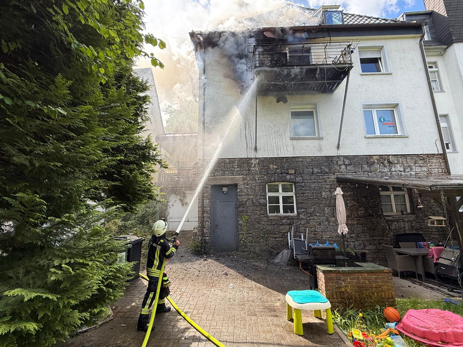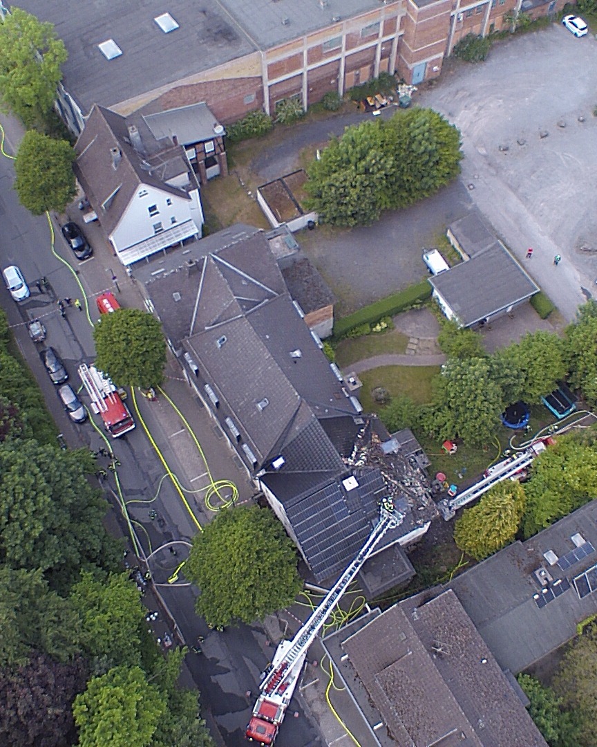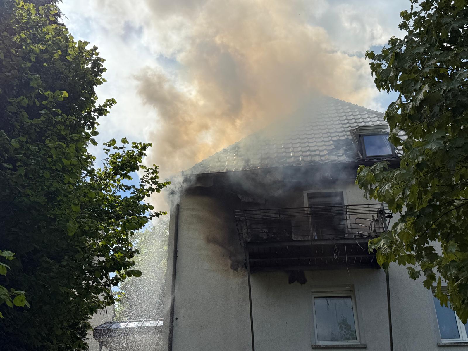 Bei Eintreffen der ersten Einheiten drang bereits dichter Rauch aus dem Obergeschoss des betroffenen Gebäudes. Glücklicherweise konnten alle im Gebäude befindlichen Personen dieses rechtzeitig und eigenständig verlassen.