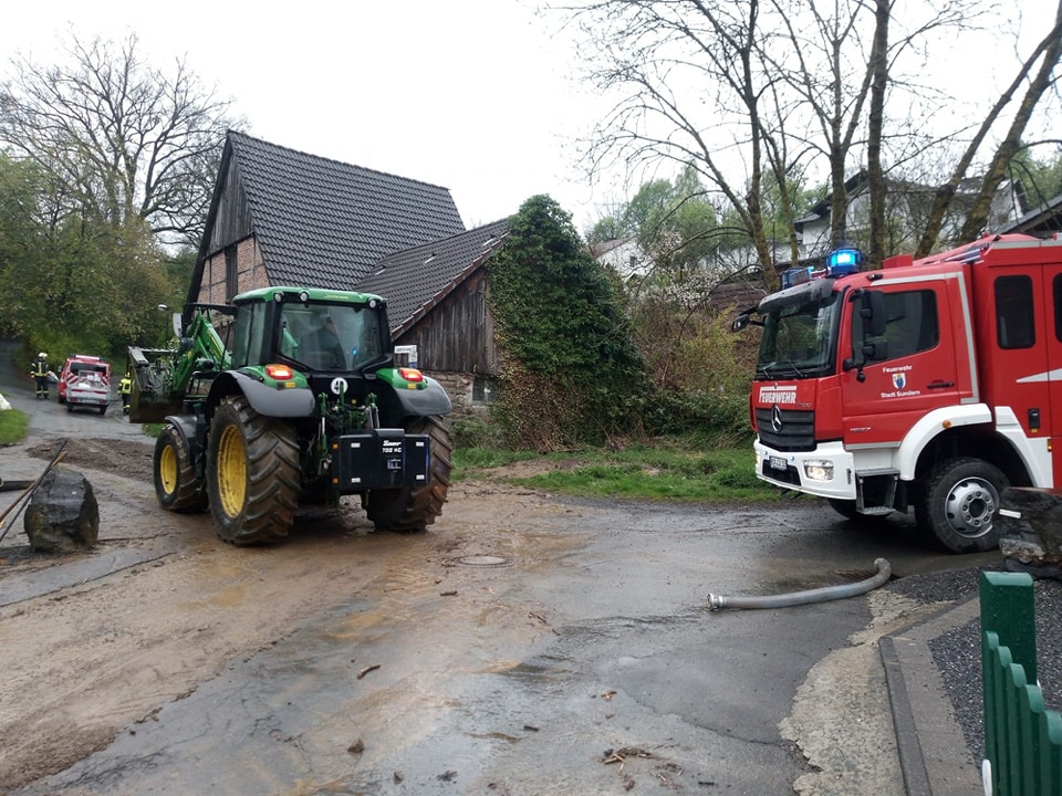 Die Wasser- und Geröllmassen drohten, über die Grundstücke in die Kellerräume der  angrenzenden Wohnhäuser zu laufen.