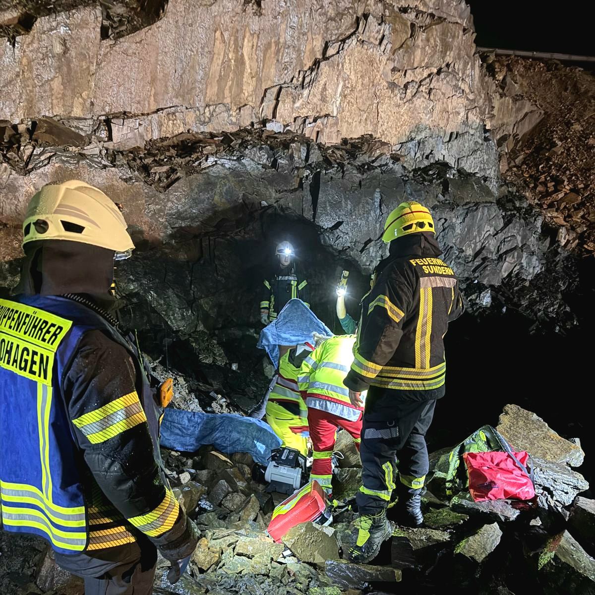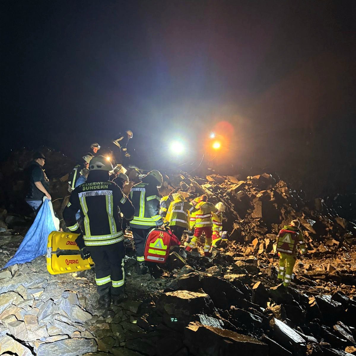 Aufgrund der vereinten Zusammenarbeit aller Feuerwehr-, Rettungs- und Polizeikräfte gelang es, den Verletzten schnell und schonend aus dem Steinbruch zu retten.