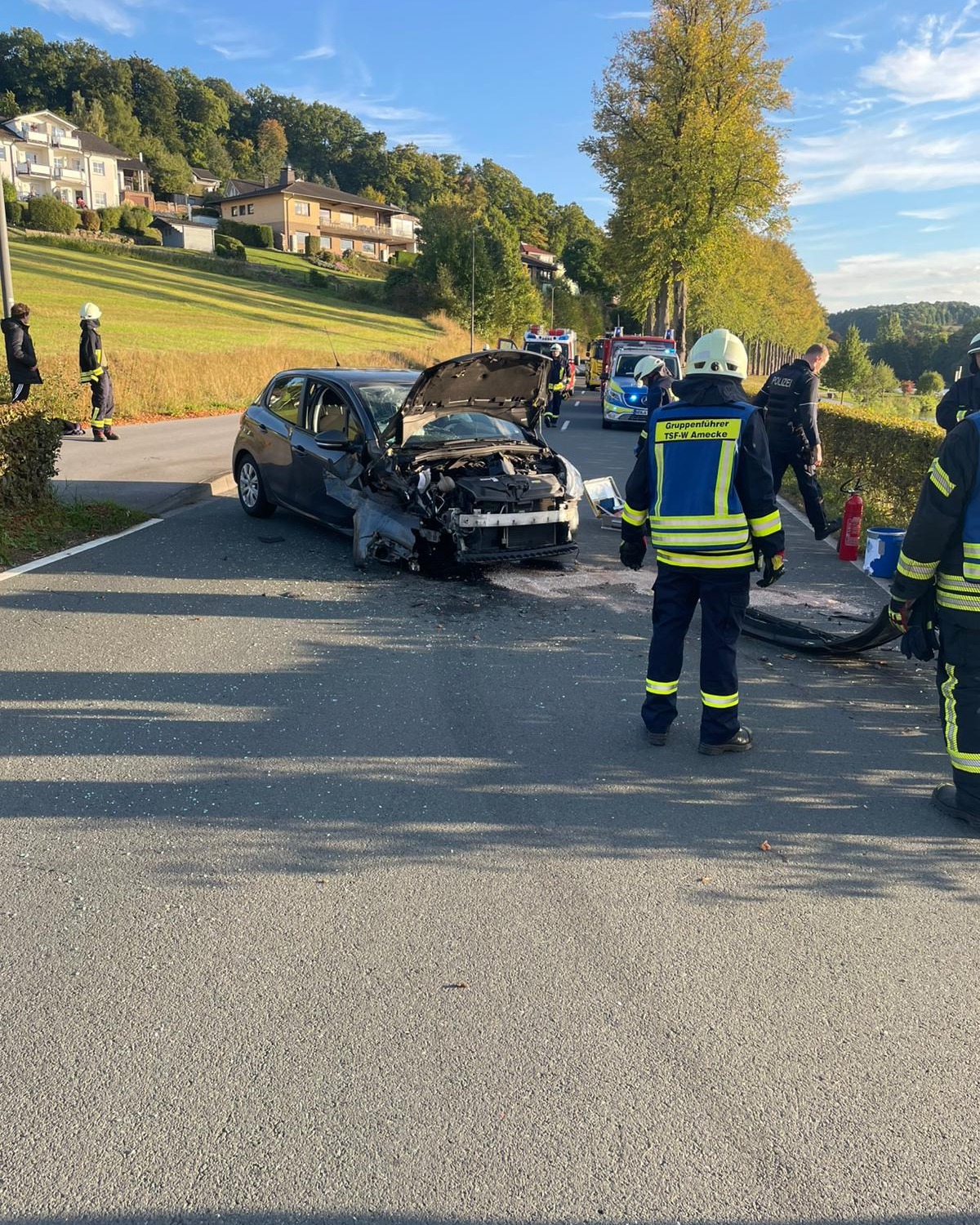 Die Einheit Amecke sicherte die Einsatzstelle ab, stellte den Brandschutz sicher und klemmte die Fahrzeugbatterie ab, um weitere Gefahren auszuschließen.