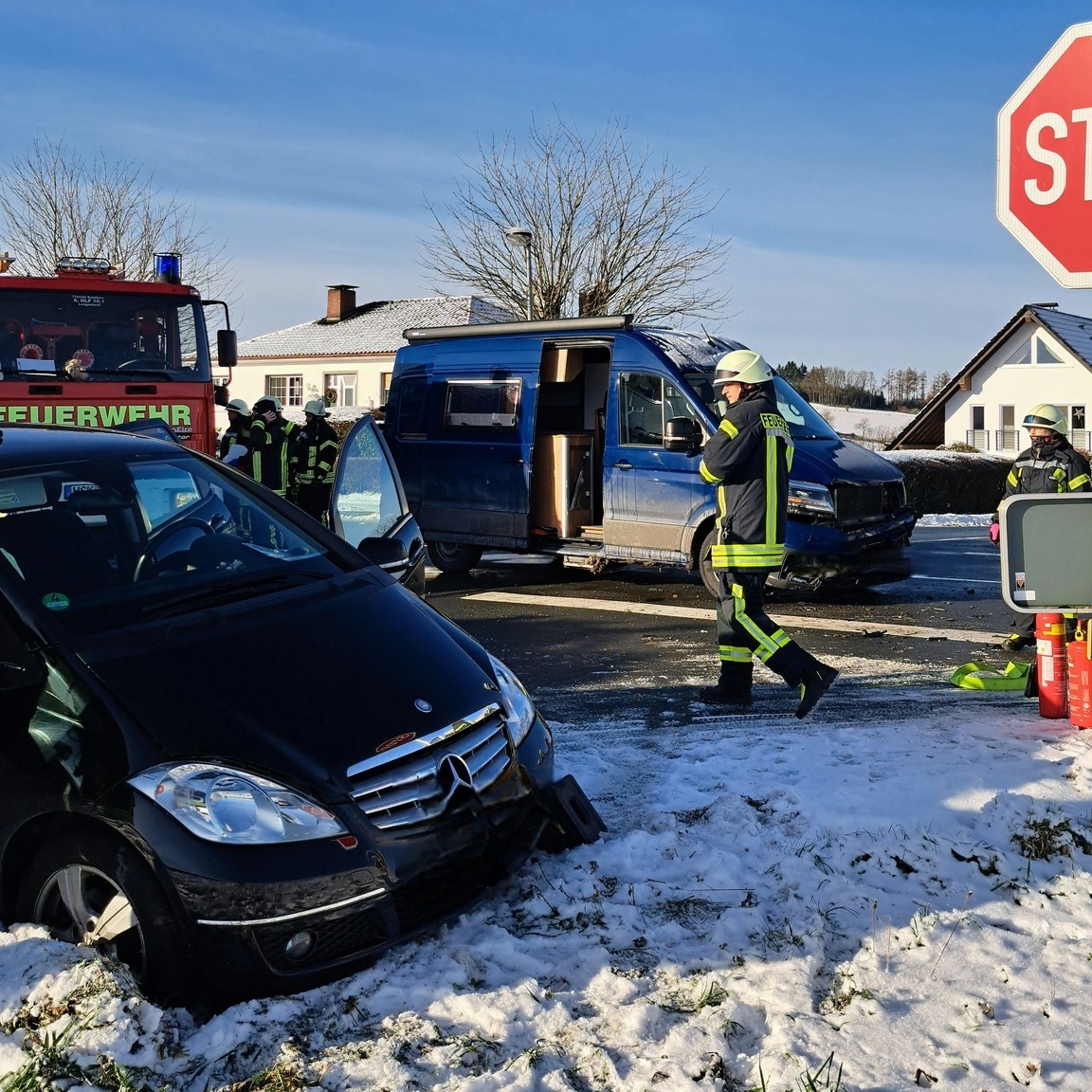 Im Kreuzungsbereich Wettmarser Weg /Kreisstraße war es zu einem Kreuzungszusammenstoß zwischen einem Pkw und einem Wohnmobil gekommen.